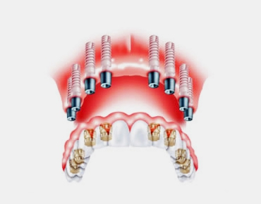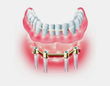 オールオン4で行う場合は、かみ合わせのアーチを短くして負担を減らす場合があります。