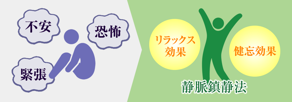 静脈内鎮静法には精神の緊張状態を緩和させる効果があるため、こういった不安を解消することもできるのです。